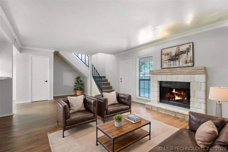 Remodeled kitchen and baths. largest 2 bedroom floor plan available. New HVAC. New kitchen shaker style cabinets. New granite, and stainless steel appliances, sink and faucet. New 1/2 bath, fresh paint, new custom tile shower and new vanities in the primary bedroom and the 2nd bedroom. Primary suite has an outdoor balcony. Large living room with office nook and stone fire place. Outdoor living area offers a covered porch and private patio. Updated light fixtures and plumbing fixtures. The complex is gated, with a club house, walking trails, 2 pools and 1 covered parking spot. Located in the heart of Tulsa, close to everything that matters.